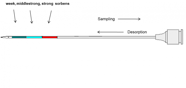 It can be combined different sorbents for wide range of VOC compounds extraction, eg.Tenax TA,Carboxen1016, Carboxen1000 or customized. It is by size a micro-extraction technology, but technically is an exhaustive device. It retains the advantages of SPME for extraction and injection. Due to the miniaturiza­tion and the modified extraction and desorption kinetics, the NT method is superior to the conventional thermal desorption for many applications.